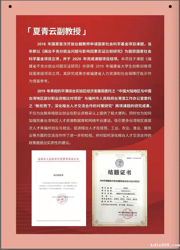 1月25日,福州市2022年“在榕台湾教师教研成果展”在宜家商场一楼荟聚中心揭牌开展。据悉,此次展览是由福州市委人才办、市台港澳办、市教育局、市台盟、福建工程学院、市台胞投资企业协会等单位联合举办,为期半年,旨在进一步推动榕台教育交流合作,更好发挥福州在引进台湾教师方面的机制优势。当天,共有40余名在榕台湾教师齐聚一堂,竞技宝官网首页登录入口台籍教师夏青云博士受邀参加并分享了教研成果。